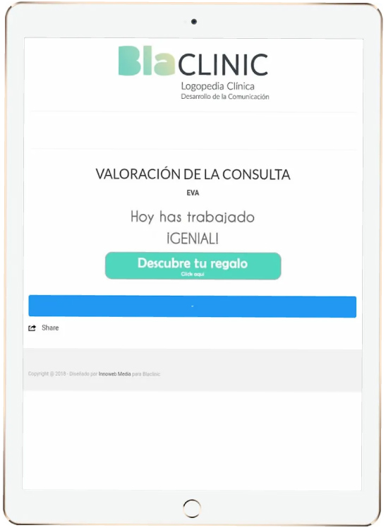 Una vez realizada esa valoración y, agradeciendo a nuestros pacientes el esfuerzo de cumplimentarla, tanto niños como adultos reciben «un regalito virtual».