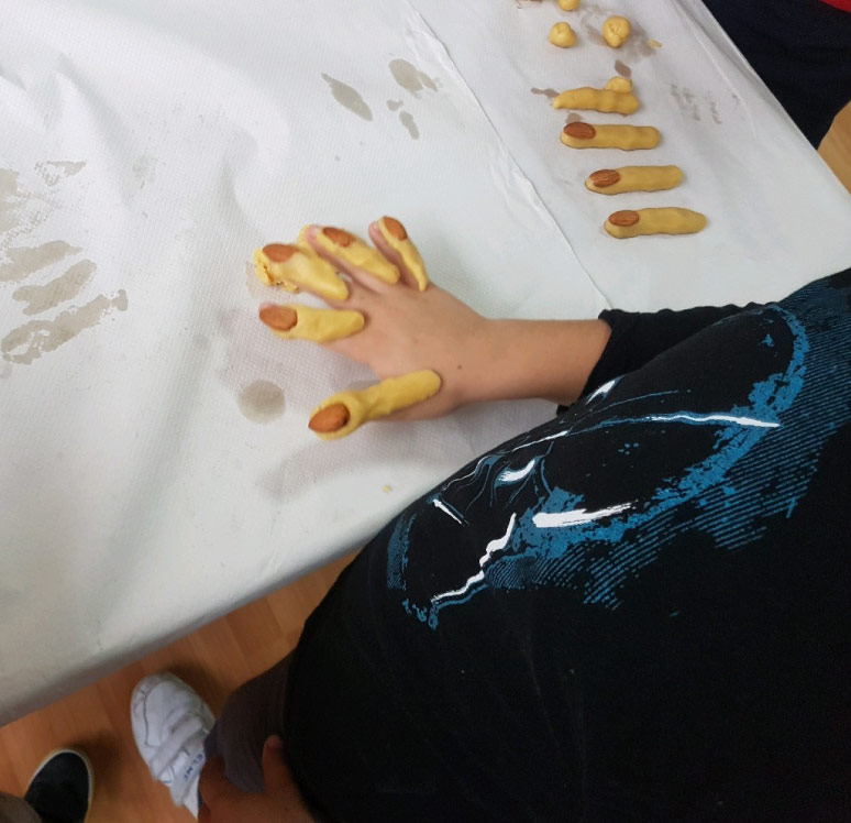 Un cocinero profesional nos visitó y enseñó a nuestros niños valores como compartir, trabajar en equipo, respetar turnos…Nuestros pequeños se lo pasaron bomba haciendo galletas de Halloween, dedos de bruja, arañas, escobas de bruja y…! todo todo para comer!